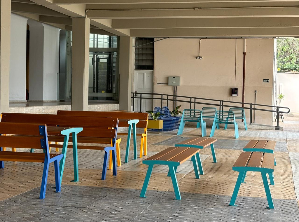 O projeto valoriza a história da instituição enquanto reforça a importância do mobiliário urbano na criação de ambientes mais humanos, organizados e convidativos dentro do espaço escolar.